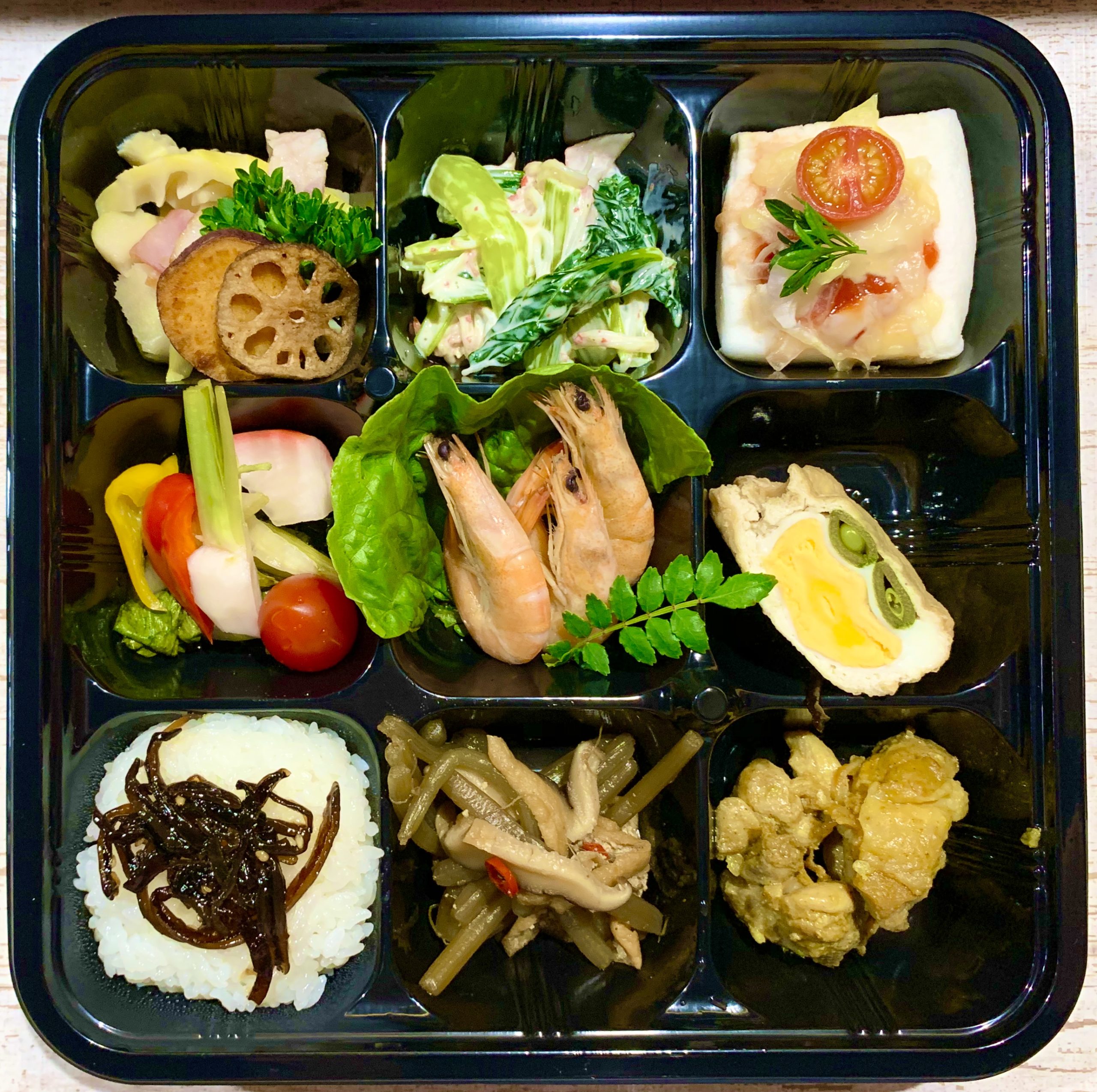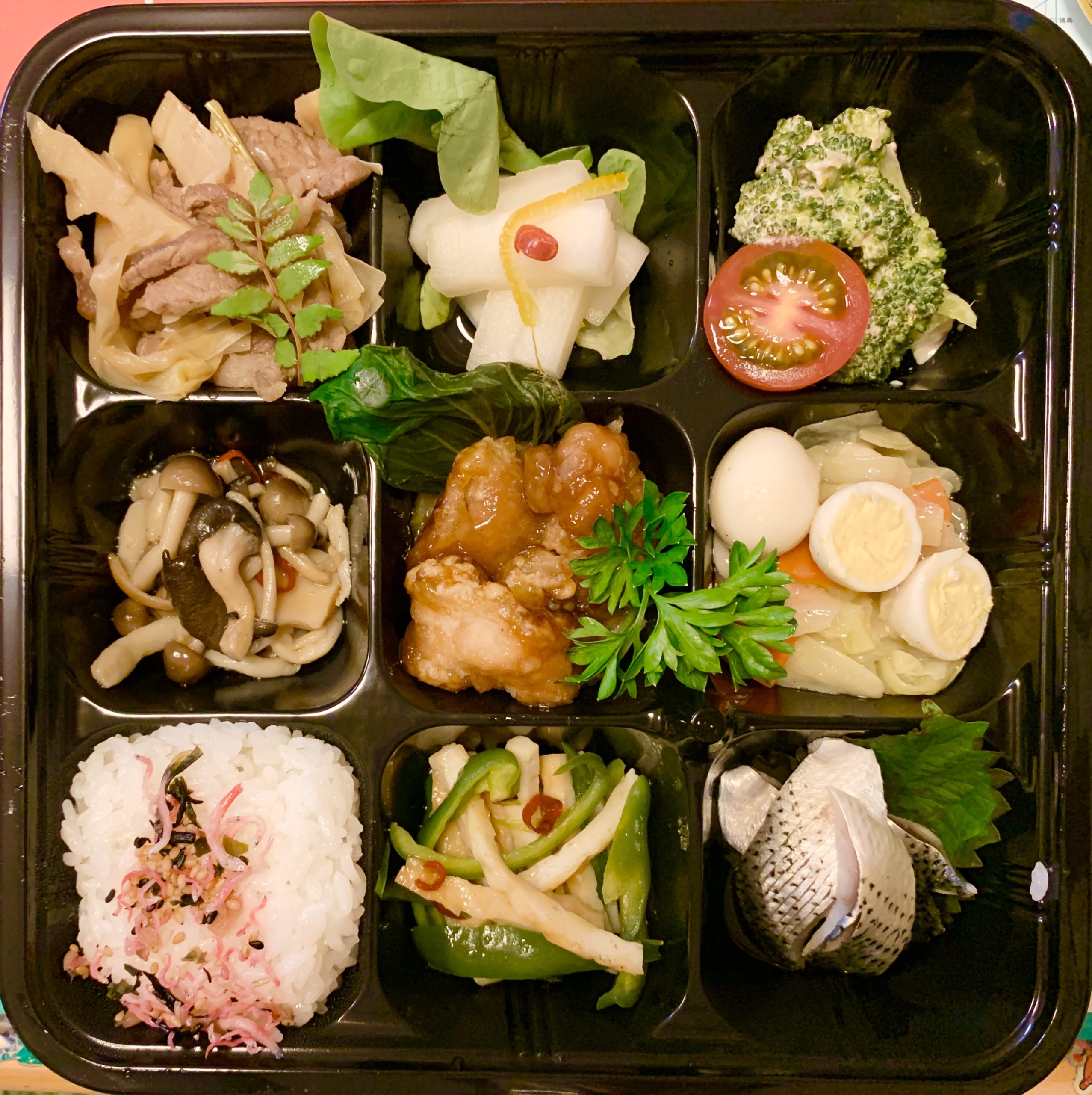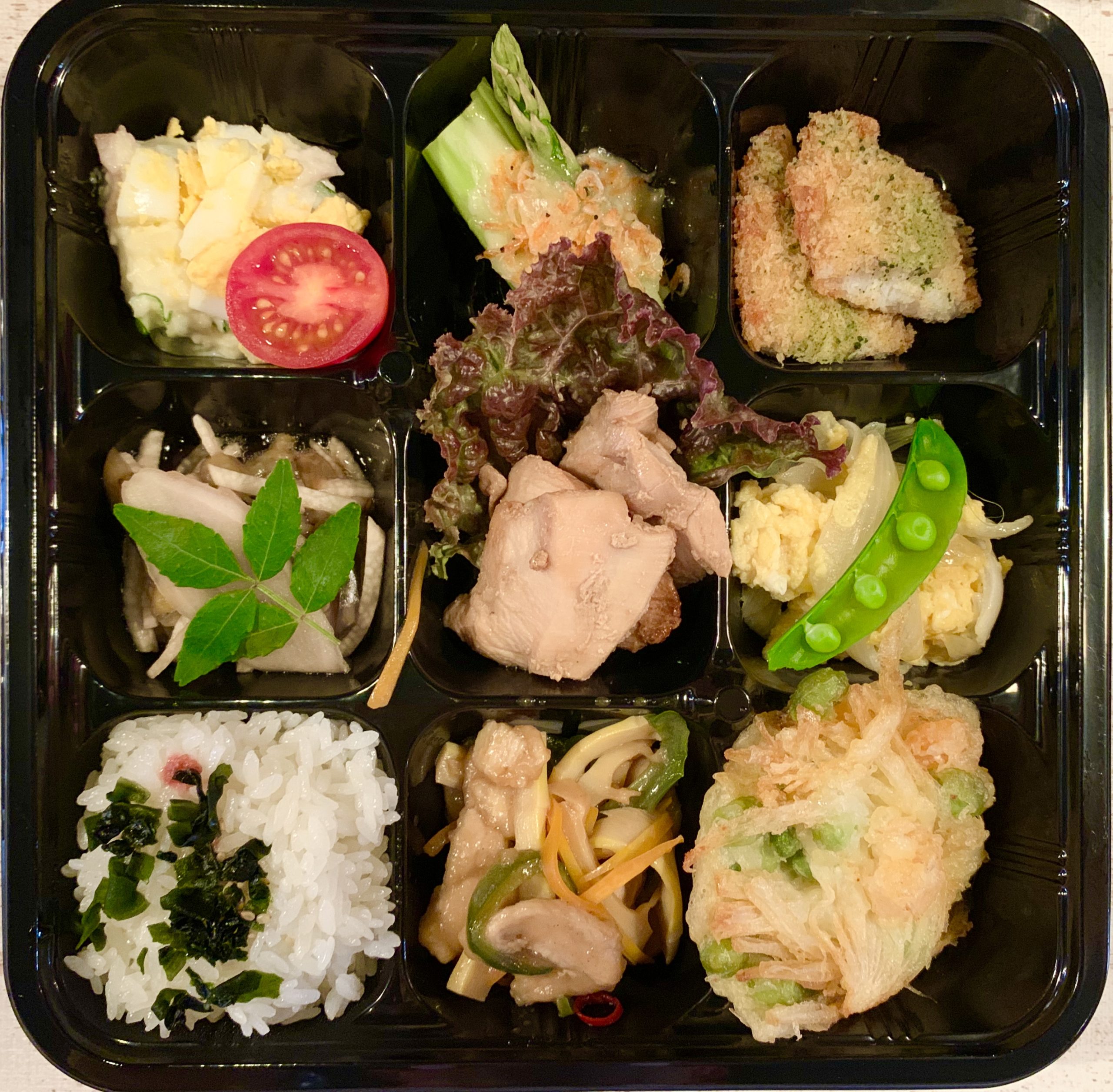 テイクアウトのお晩菜セットは、色どり華やか、ヘルシーかつボリ