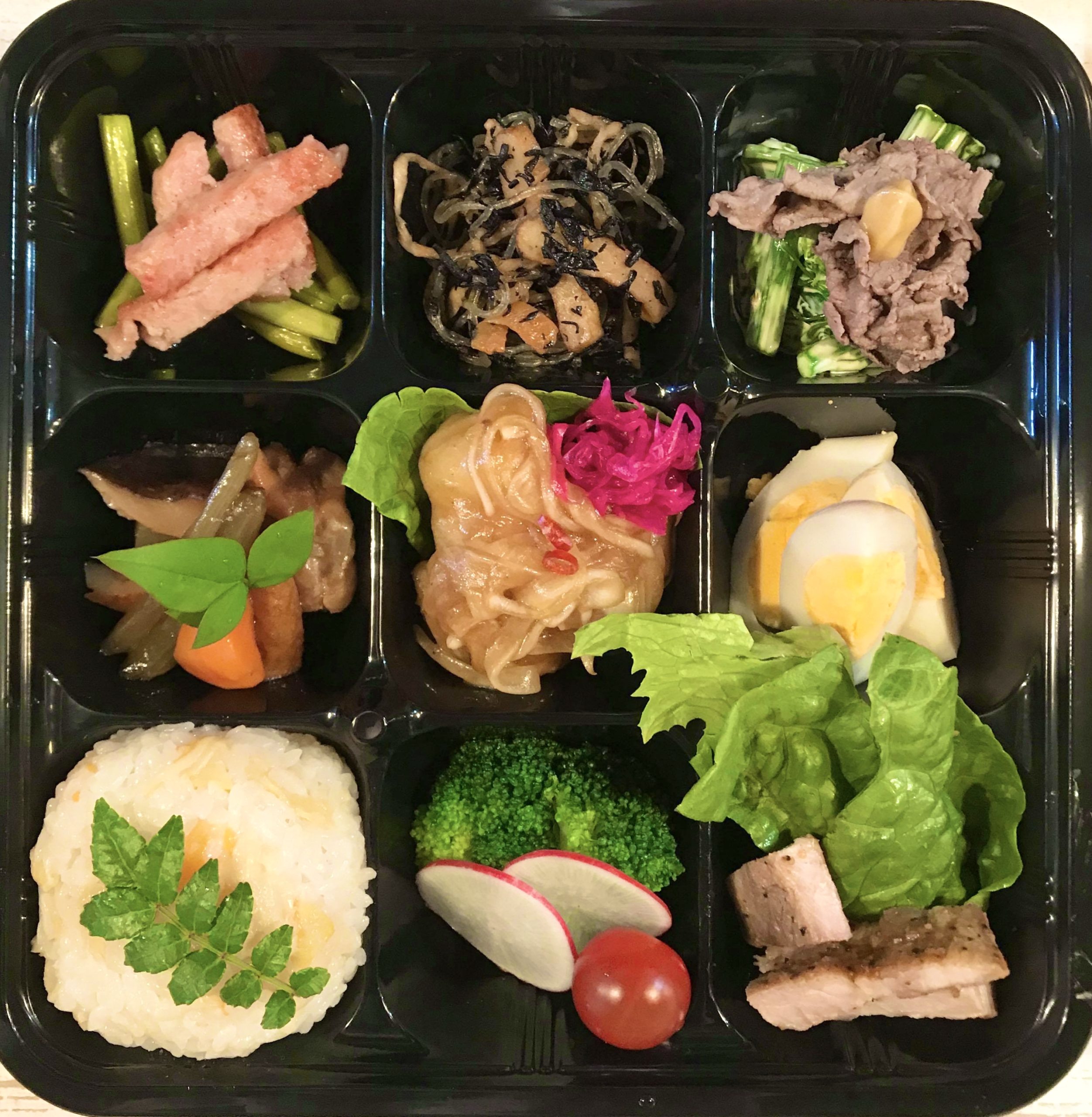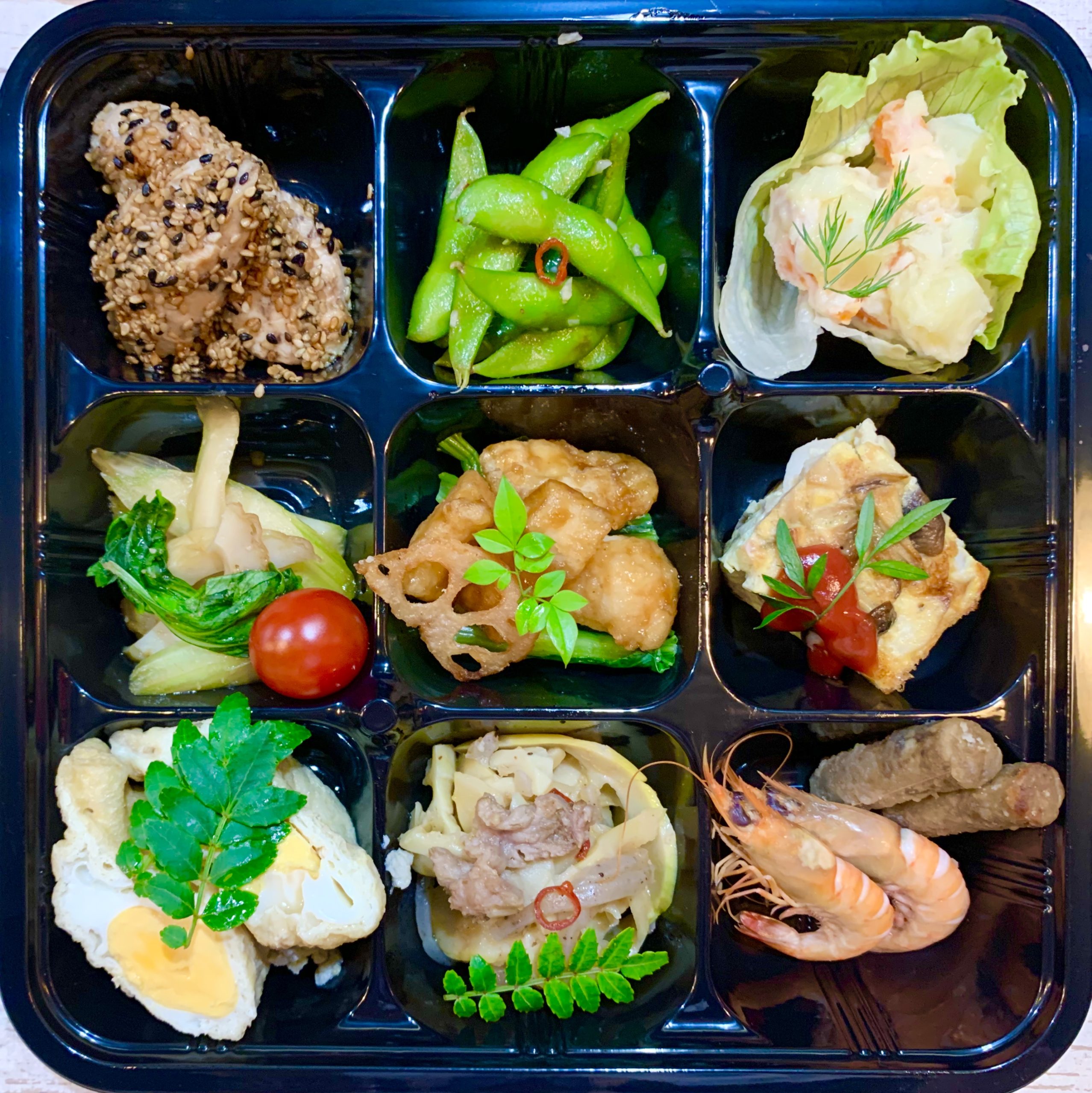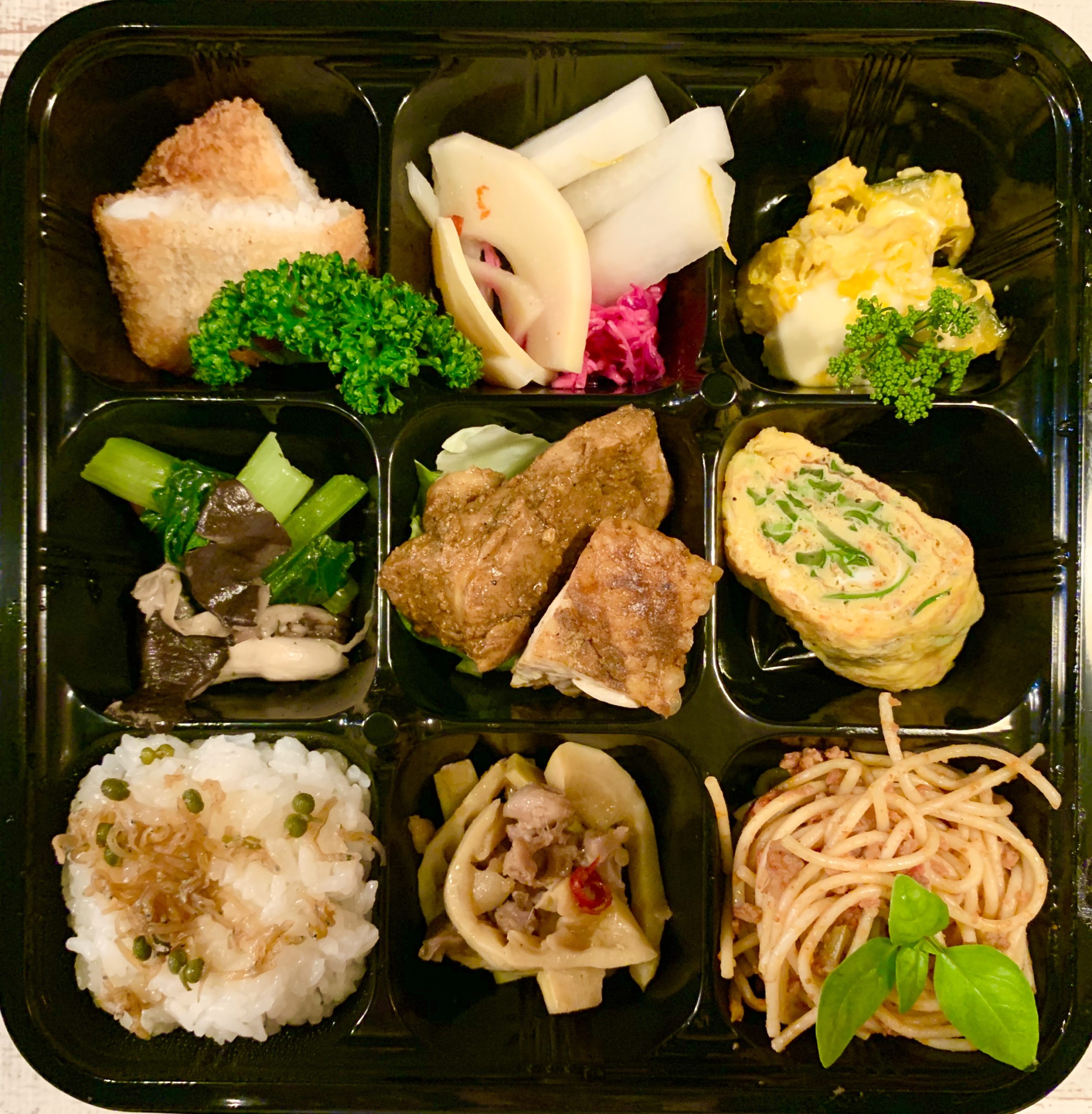 テイクアウトのお晩菜セットは、色どり華やか、ヘルシーかつボリ